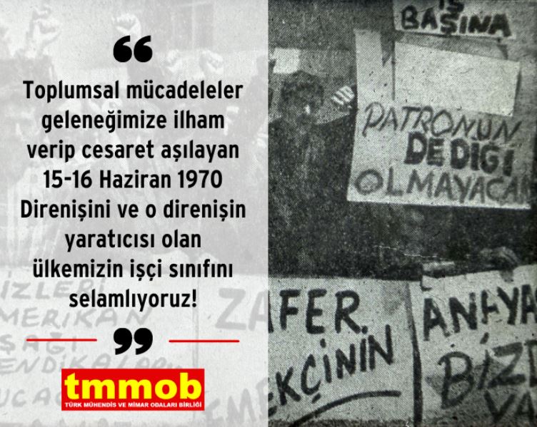 Ülke tarihimizin en önemli işçi hareketlerinden biri olan 15-16 Haziran 1970 Direnişi`nin 52. yılı nedeniyle TMMOB Yönetim Kurulu Başkanı Emin Koramaz tarafından basın açıklaması yapıldı.