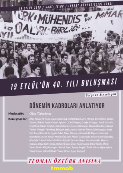 Türkiye çapında yüz binin üzerinde mühendis, mimar ve şehir plancısının katılımıyla gerçekleştirilen 19 Eylül 1979 İş Bırakma Eylemi'nin 40. yılındayız.