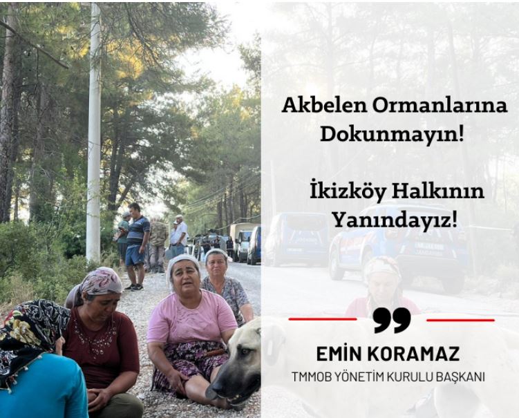 TMMOB Yönetim Kurulu Başkanı Emin Koramaz, Muğla`da genişletilmek istenen kömür madenine karşı direnen köylülere rağmen bu sabah itibariyle jandarma kuvvetlerinin Akbelen Ormanı`na girmesi üzerine 24 Temmuz 2023 tarihinde bir basın açıklaması yaptı.