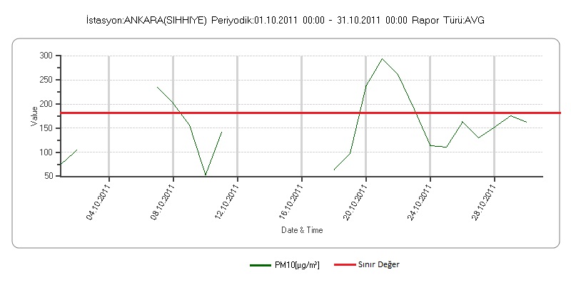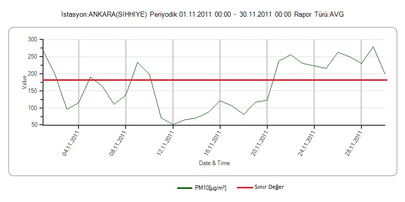 Ekim, Kasım ve Aralık aylarında PM10 için 260 µg/m3 (mikrogram/metreküp) olan uyarı eşiği 5 defa aşıldığı halde