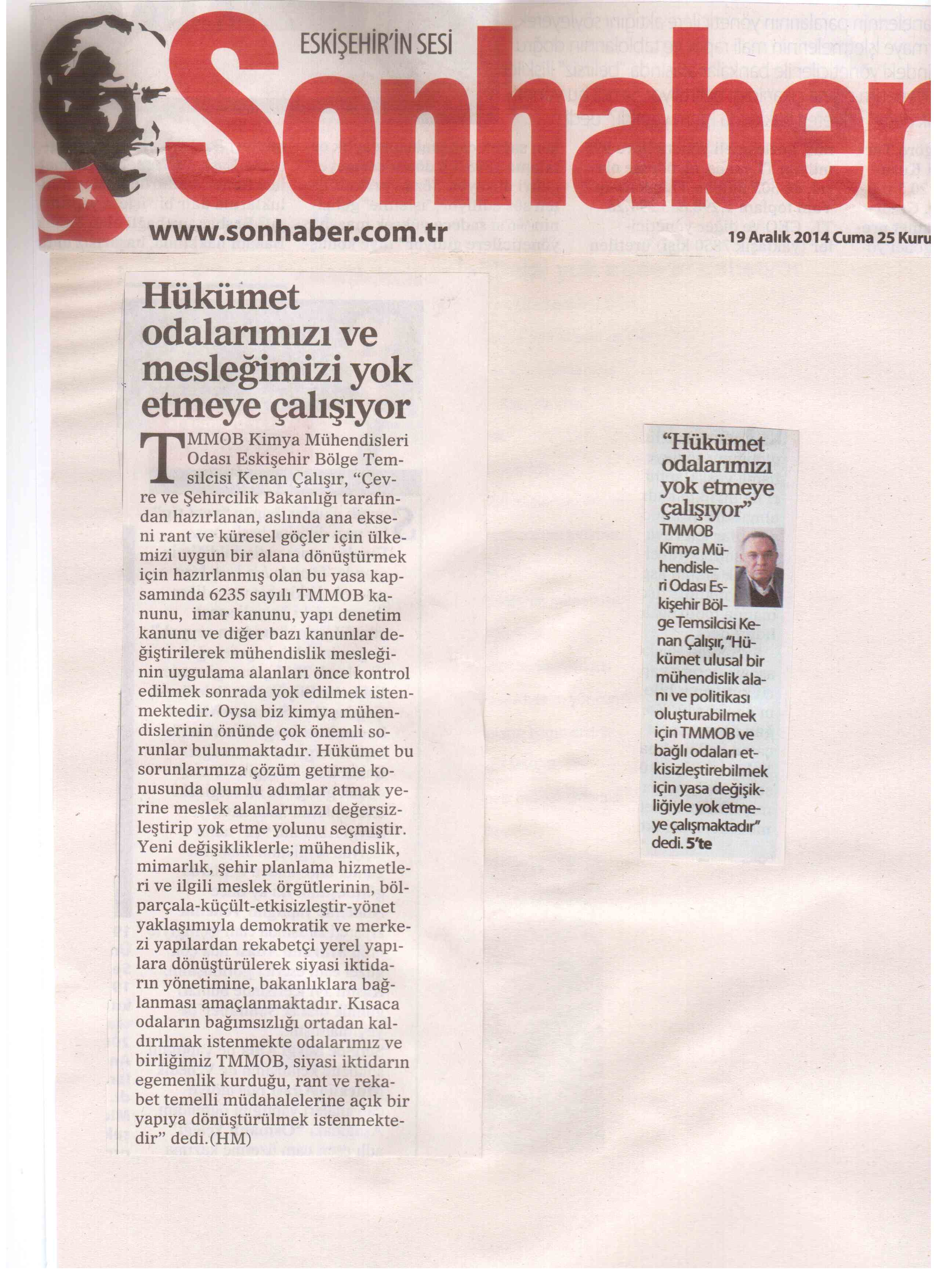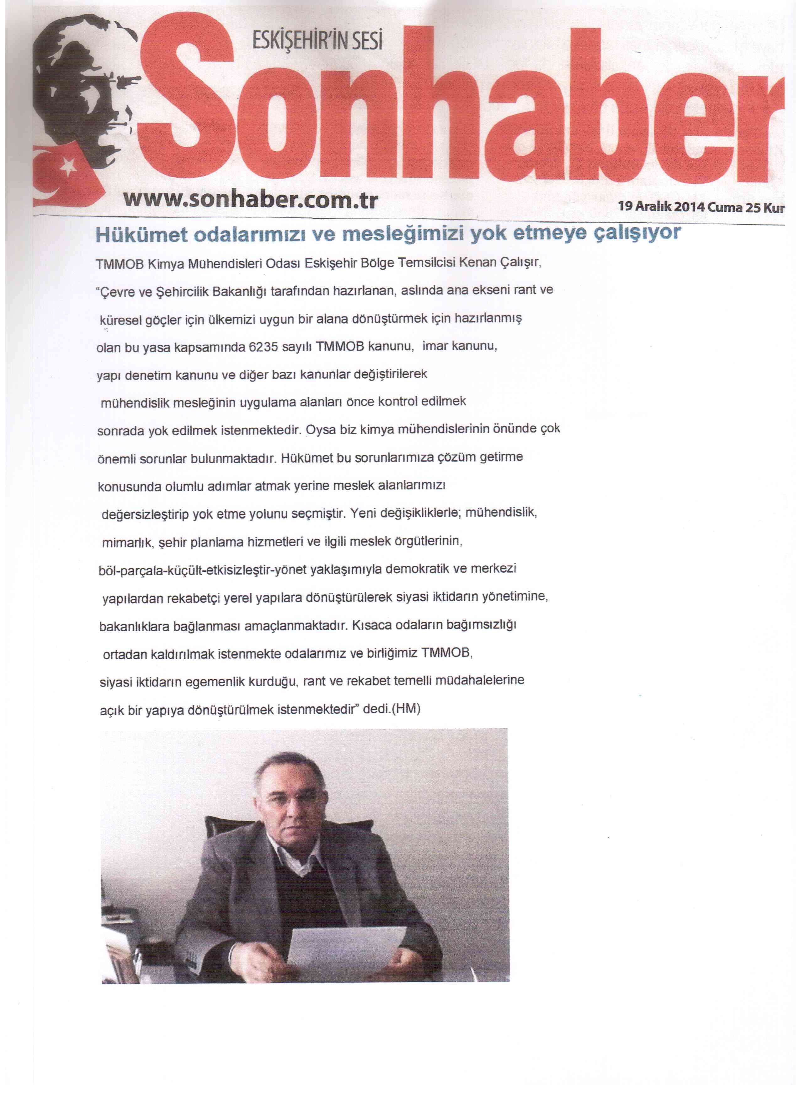 Oysa biz kimya mühendislerinin önünde çok önemli sorunlar bulunmaktadır. Hükümet bu sorunlarımıza çözüm getirme konusunda olumlu adımlar atmak yerine meslek alanlarımızı değersizleştirip yok etme yolunu seçmiştir.