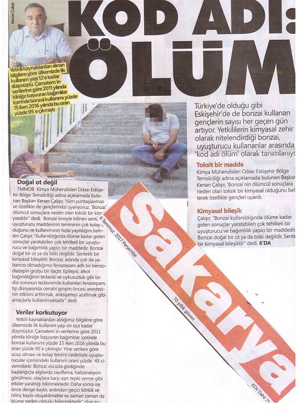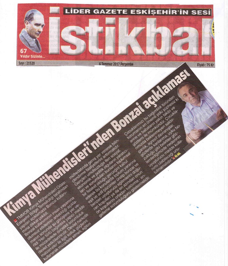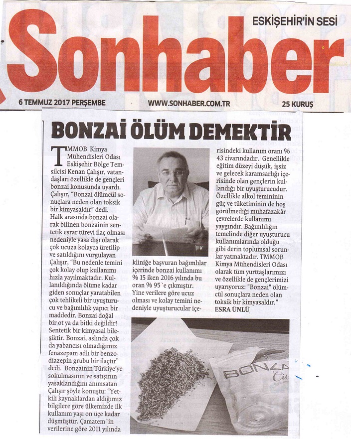 TMMOB Kimya Mühendisleri Odası olarak tüm yurttaşlarımızı ve özellikle de gençlerimizi uyarıyoruz: `Bonzai` ölümcül sonuçlara neden olan toksik bir kimyasaldır.