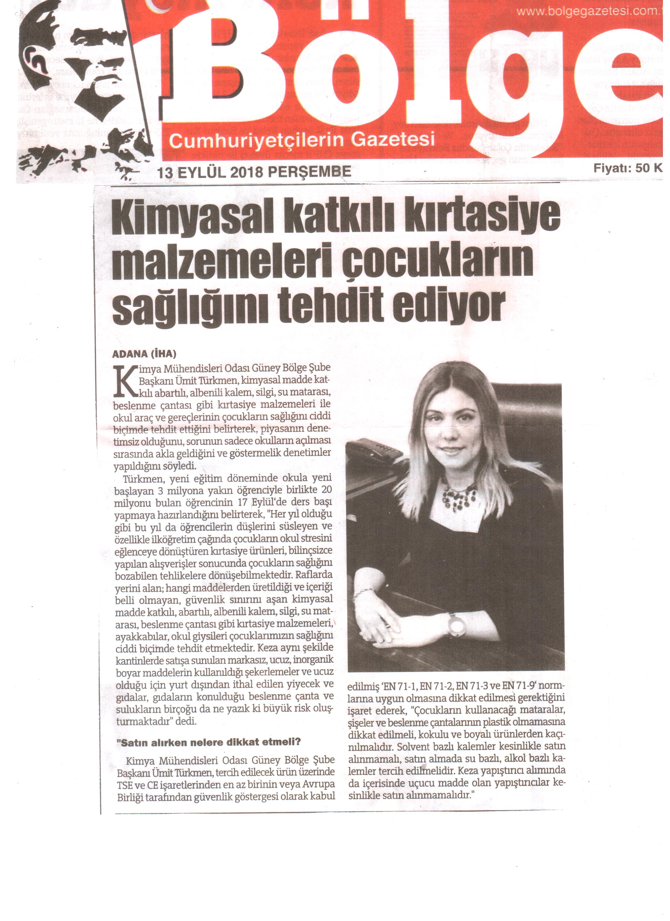 Mesleki sorumluluğumuz gereği öğrencilerin kantinlerde tükettiği gıdalar kadar, kullandıkları eşyaların da güvenli olması gerektiğine dikkat çekmek istiyoruz. Kimya Mühendisleri Odası olarak, öğrencilerin kullanacağı kırtasiye malzemelerindeki kimyasal risklerin kontrol altında tutulması gerekliliğini kamuoyuna duyuruyoruz. Her yıl olduğu gibi bu yıl da öğrencilerin düşlerini süsleyen ve özellikle ilköğretim çağında çocukların okul stresini eğlenceye dönüştüren kırtasiye ürünleri, bilinçsizce yapılan alış verişler sonucunda çocukların sağlığını bozabilen tehlikelere dönüşebilmektedir. Raflarda yerini alan; hangi maddelerden üretildiği ve içeriği belli olmayan, güvenlik sınırını aşan kimyasal madde katkılı, abartılı, albenili kalem, silgi, su matarası, beslenme çantası gibi kırtasiye malzemeleri, ayakkabılar, okul giysileri çocuklarımızın sağlığını ciddi biçimde tehdit etmektedir. Keza aynı şekilde kantinlerde satışa sunulan markasız, ucuz, inorganik boyar maddelerin kullanıldığı şekerlemeler ve ucuz olduğu için yurt dışından ithal edilen yiyecek ve gıdalar, gıdaların konulduğu beslenme çanta ve sulukların birçoğu da ne yazık ki büyük risk oluşturmaktadır.