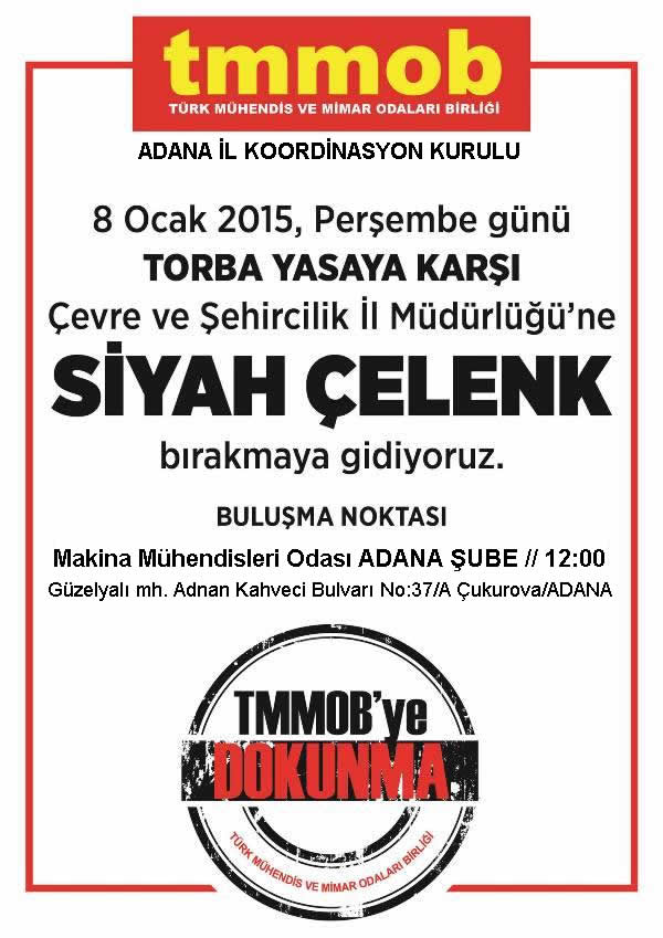 8 Ocak 2015 Perşembe günü saat 12.30'da tüm illerde Torba Yasaya karşı Çevre ve Şehircilik İl Müdürlükleri önüne siyah çelenk bırakıyoruz...