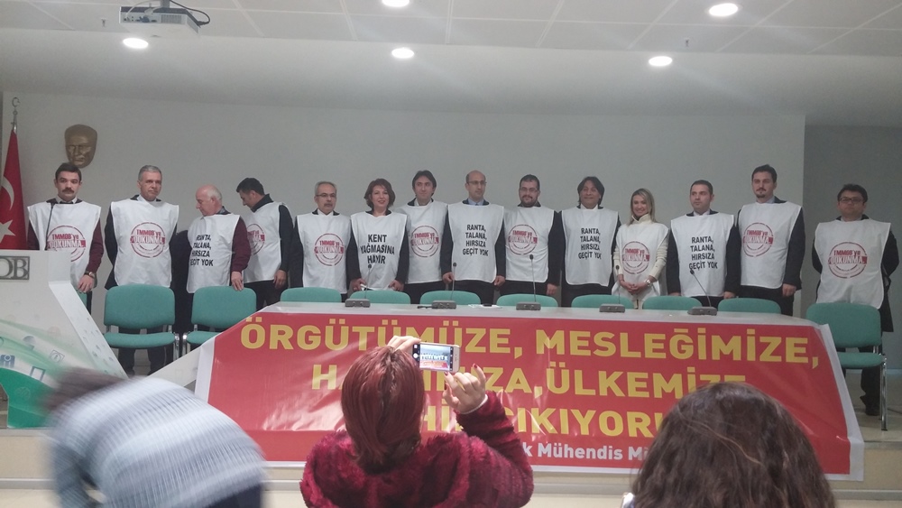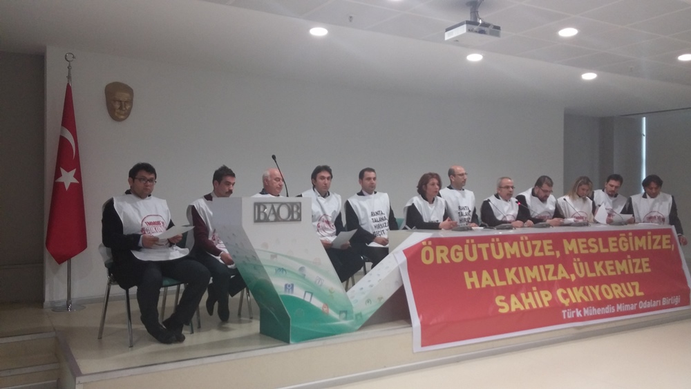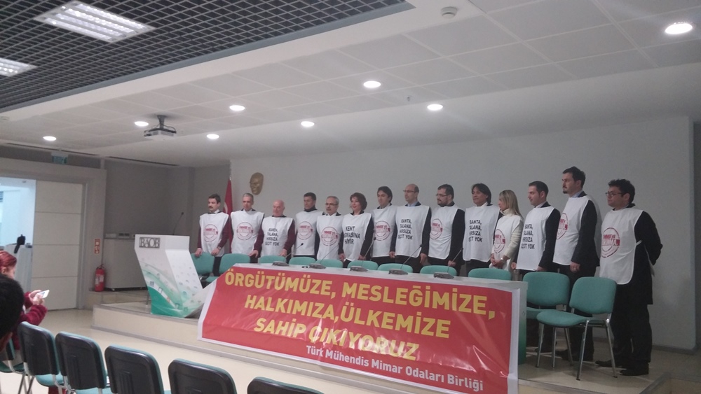Ancak bilinmelidir ki mühendis, mimar, şehir plancıları ve meslek örgütleri; ülke, kamu, halk, meslek, meslektaş yararı bütünlüğündeki mücadelesini sürdürecektir, İktidarın hiç bir baskısına, gericiliğine, piyasacılığına ve diktasına teslim olmayacaktır.
