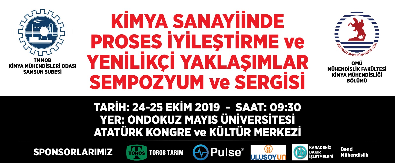 24-25 Ekim 2019 tarihlerinde samsunda düzenleyeceğimiz I.KİMYA SANAYİİNDE PROSES İYİLEŞTİRME VE YENİLİKÇİ YAKLAŞIMLAR sempozyum ve sergisinde sizleri aramızda görmekten mutluluk duyarız.