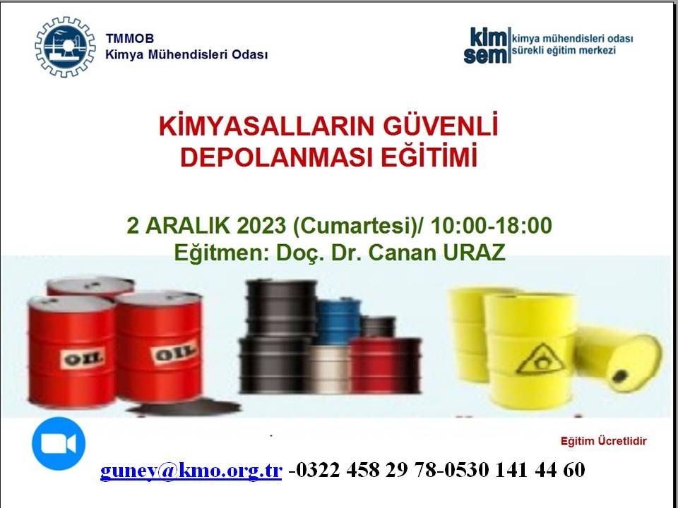 Odamız tarafından 2 Aralık 2023 tarihinde Kimyasalların Güvenli Depolanması Eğitimi online olarak zoom uygulaması üzerinden düzenlenecektir. Eğitim ile ilgili detaylı bilgi aşağıda yer almakta olup eğitim başvuru formu ekte iletilmiştir.