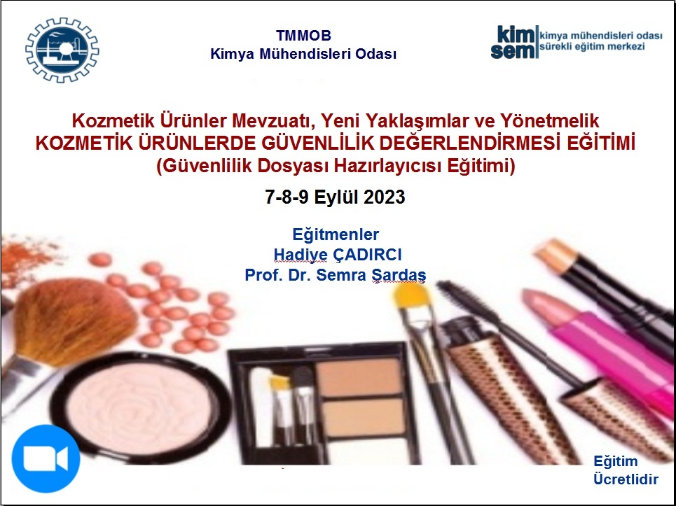 07-08-09 Eylül 2023 tarihlerinde KOZMETİK ÜRÜNLERDE GÜVENLİLİK DEĞERLENDİRMESİ EĞİTİMİ (Güvenlilik Dosyası Hazırlayıcısı Eğitimi)