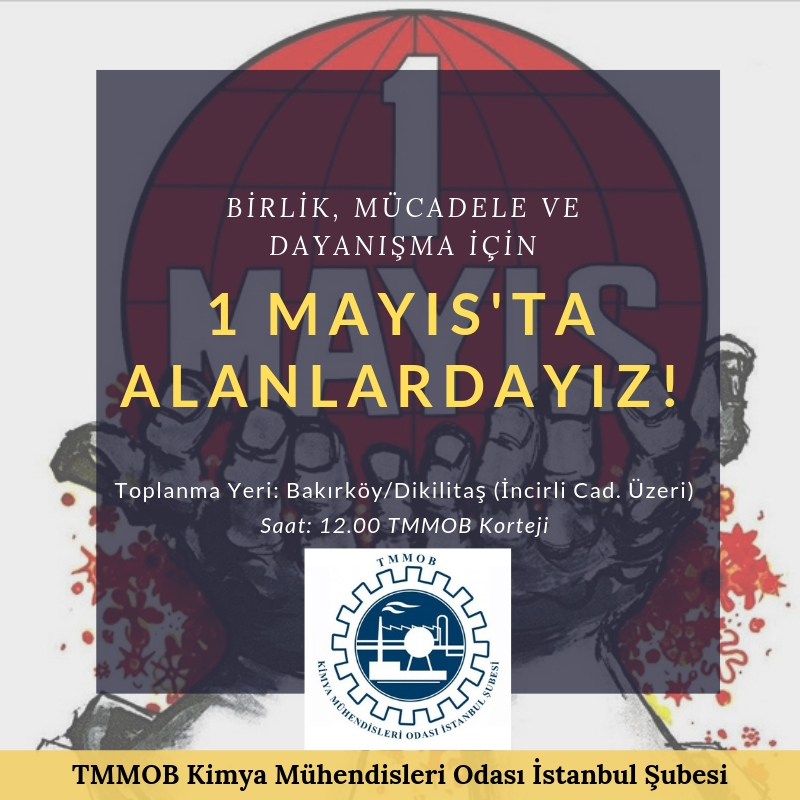`Birlik, Mücadele, Dayanışma İçin` 1 Mayıs`ta Alanlarda, TMMOB Kortejinde Buluşuyoruz. Toplanma Yeri ve Saati: Bakırköy Dikilitaş (İncirli Caddesi Üzeri) - 12.00