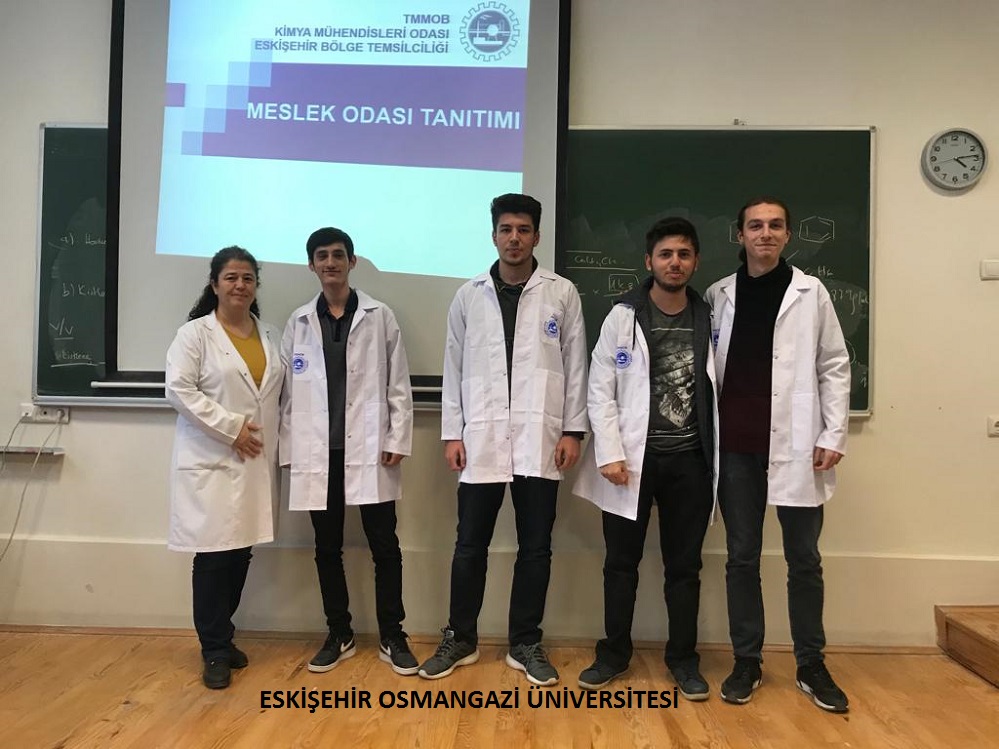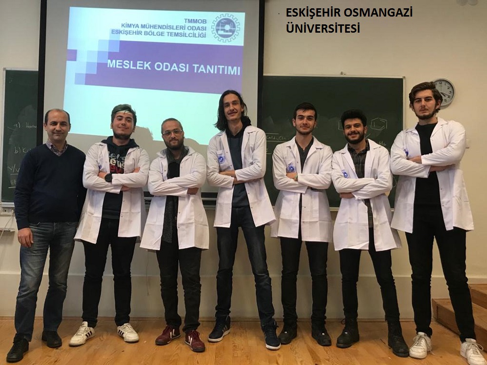 Eskişehir Osmangazi ve Teknik Üniversiteleri Kimya Mühendisliği Bölümü ; Bölüm Başkanlarımızın ve Öğretim Üyelerinin katılımı ile 1. sınıf öğrencilerimize odamızı tanıtıcı sunum yapılmış ve kendilerine Bölge Temsilciliğimiz tarafından hazırlanan Laboratuar önlükleri ve Laboratuar gözlükleri hediye edilerek "BÖLÜME HOŞGELDİNİZ " denilmiştir.