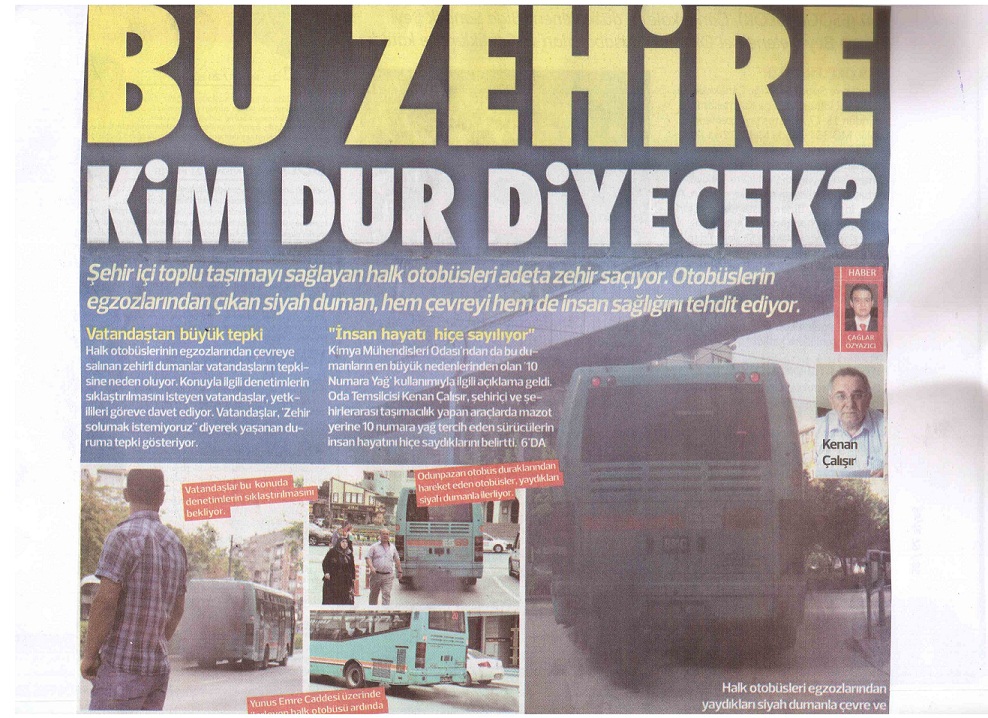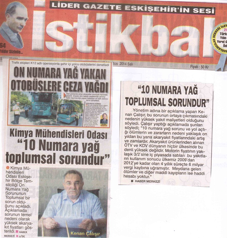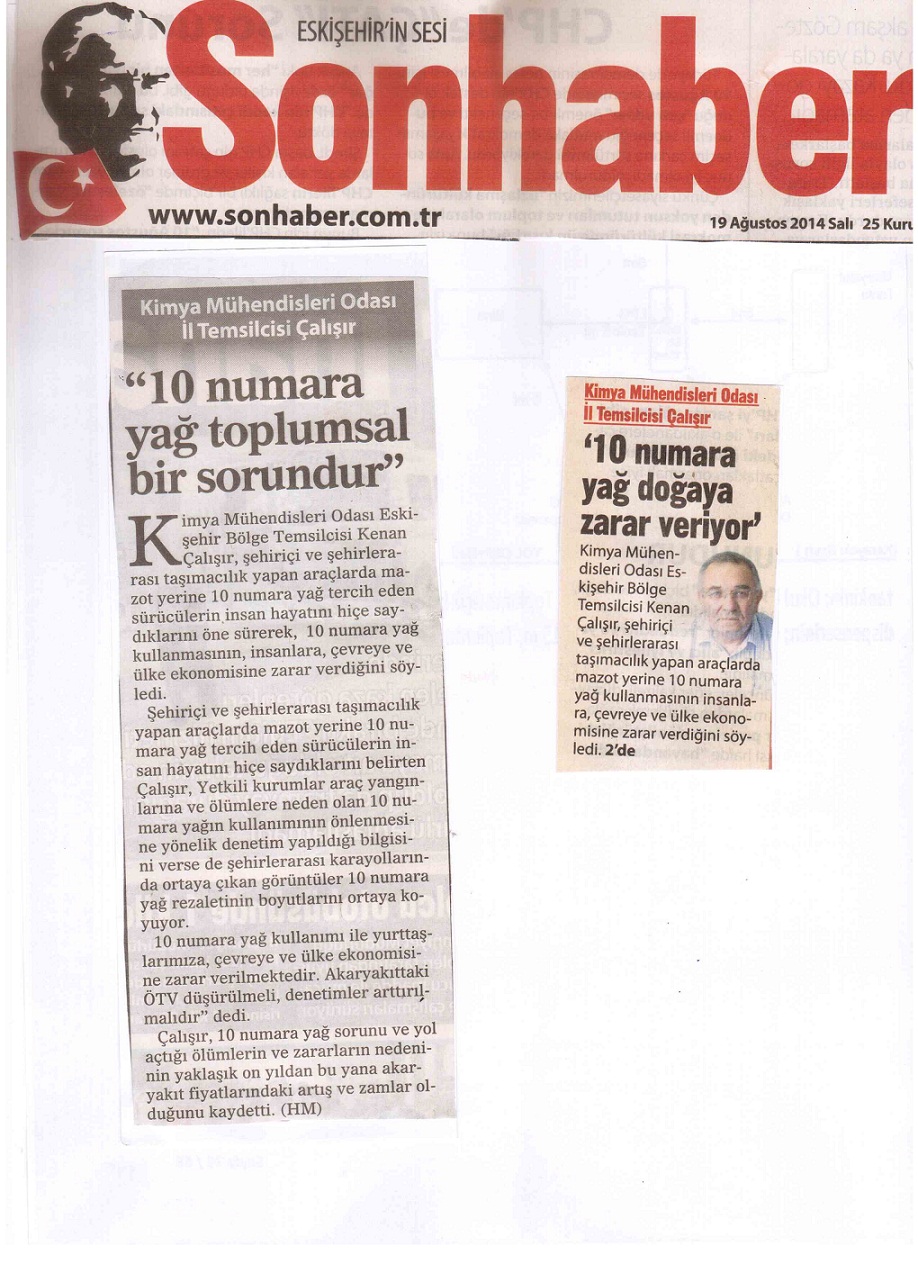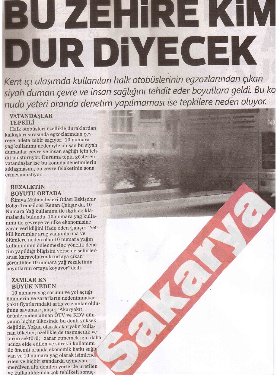 Kamuoyunu ve yetkilileri uyarmak amacıyla yaptığımız basın açıklamamız Eskişehir yerel gazetelerinde manşette ve ilk sıralarda yerini aldı. Kimya Mühendisleri Odası Eskişehir Bölge Temsilciliği olarak halkı bilinçlendirmeye ve yetkilileri uyarmaya devam edeceğiz.