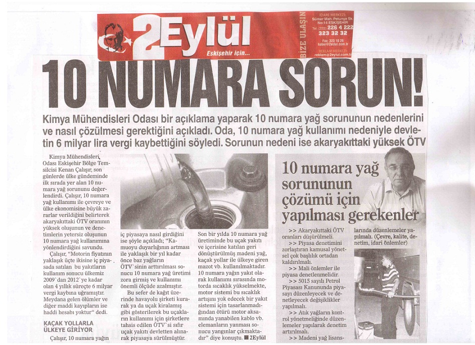 Üç kuruşluk kâr uğruna insan hayatını hiçe sayan trafik canavarları şehiriçi ve şehirlerarası taşımacılık yapan araçlarda mazot yerine 10 numara yağ tercih eden sürücüler insan hayatını hiçe saymaya devam ediyor. Yetkili kurumlar araç yangınlarına ve ölümlere neden olan 10 numara yağın kullanımının önlenmesine yönelik denetim yapıldığı bilgisini verse de Şehirlerarası karayollarında ortaya çıkan görüntüler 10 numara yağ rezaletinin boyutlarını ortaya koyuyor.