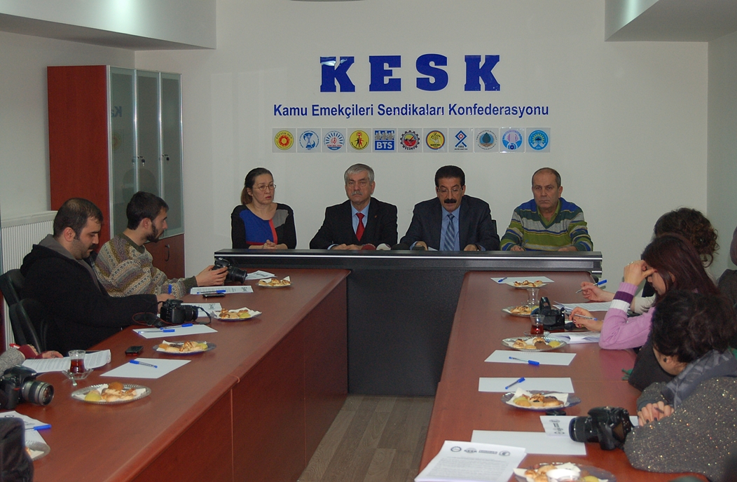 DİSK, KESK, TMMOB ve TTB, yolsuzluk, yoksulluk, zulüm düzeninden hesap sormak için 11 Ocak`ta Ankara`da `ÖZGÜRLÜK, BARIŞ, DEMOKRASİ, ADALET ve EMEK MİTİNGİ` düzenliyor. DİSK Başkanı Kani Beko, KESK Başkanı Lami Özgen, TMMOB Yönetim Kurulu Başkanı Mehmet Soğancı, TTB Merkez Konseyi II. Başkanı Gülriz Erişgen, konuya ilişkin olarak 26 Aralık 2013 tarihinde KESK Genel Merkezi`nde bir basın toplantısı düzenledi.