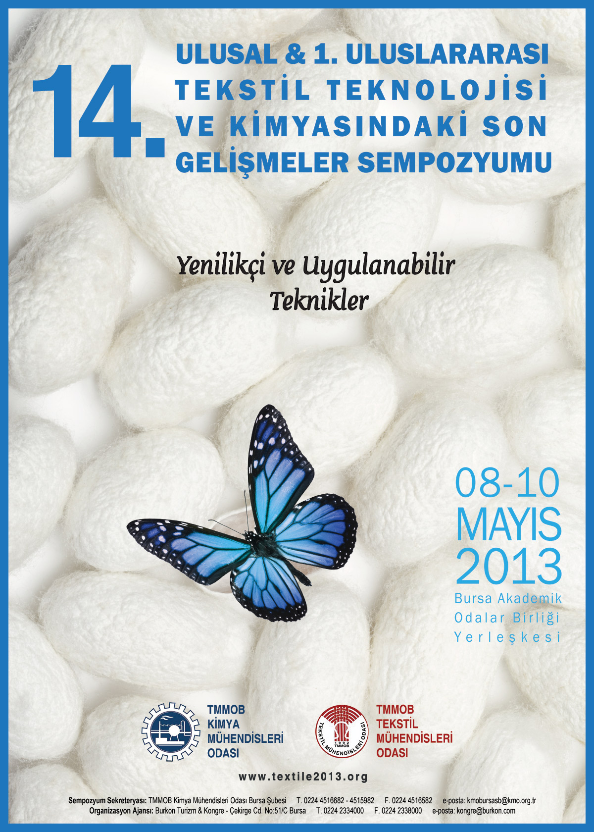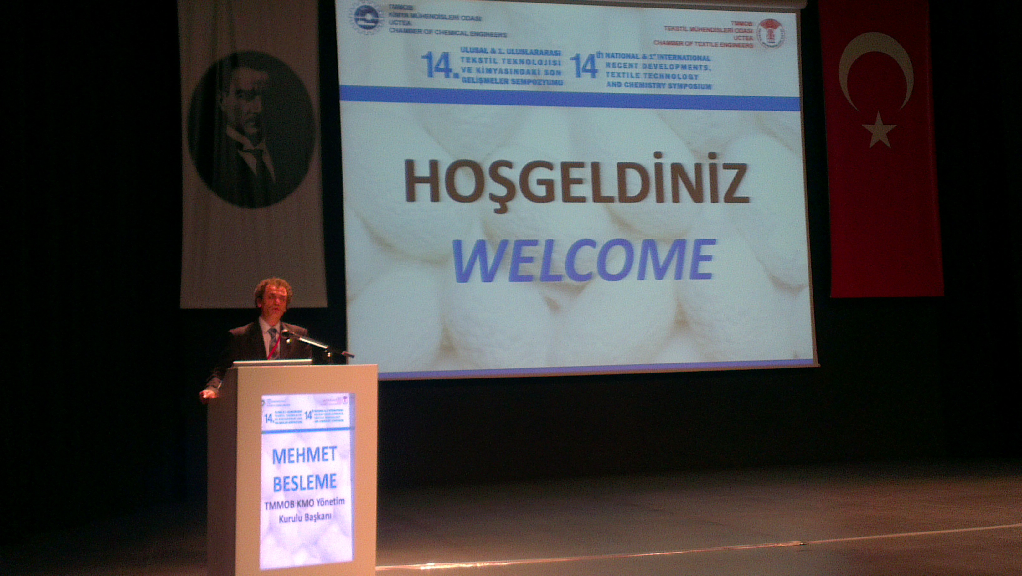 KMO tarafından yaklaşık 25 yıllık bir geçmişi olan ve iki yıllık dönemde bir düzenlediğimiz Tekstil Teknolojileri Sempozyumunu, TMMOB` ye bağlı Tekstil Mühendisleri Odamızla birlikte Ulusal düzeyden alıp Uluslar arası boyuta taşımış olmaktan dolayı büyük bir onur duyuyoruz. İki güzide meslek örgütümüz adına hepinize katılımlarınızdan dolayı teşekkür eder, Kimya Mühendisleri Odası Yönetim Kurulu ve şahsım adına sevgi ve saygı ile selamlarım.