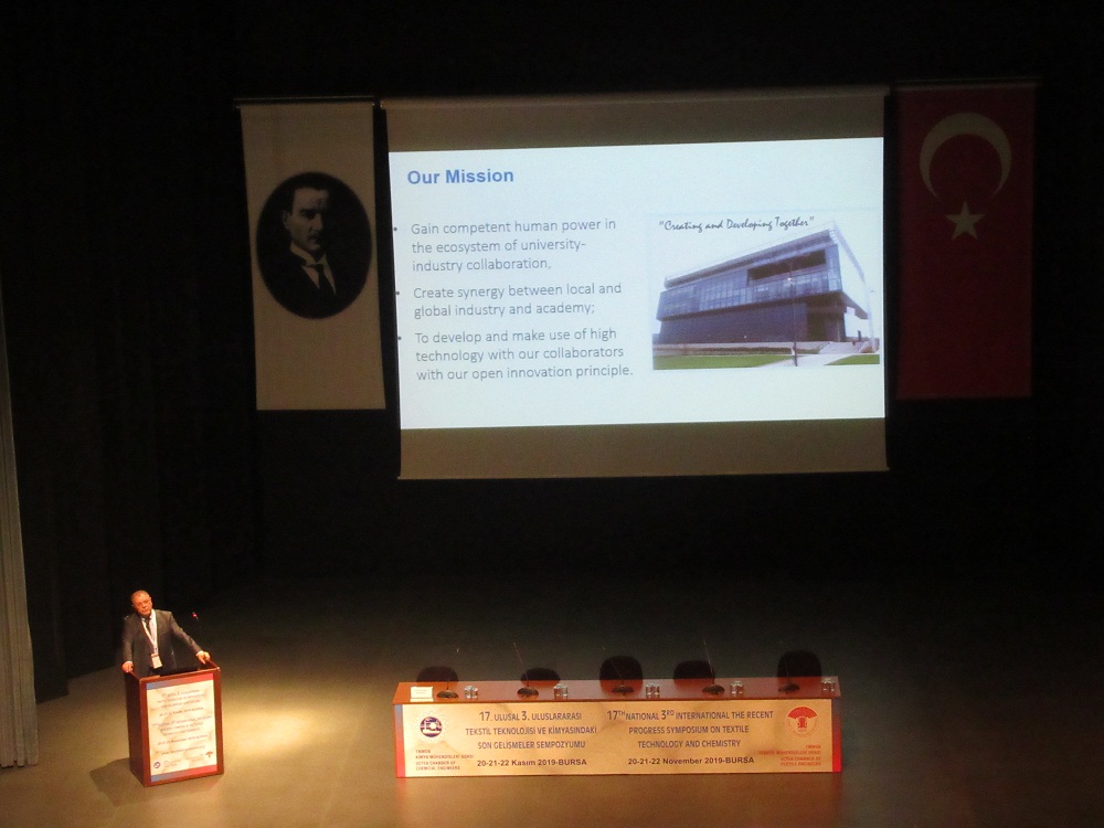 17. Ulusal, 3. Uluslararası Tekstil Teknolojisi ve Kimyasındaki Son Gelişmeler Sempozyumu 20- 21 - 22 Kasım 2019 tarihinde Bursa Akademik Odalar Birliği yerleşkesinde gerçekleştirilmiştir. TMMOB Kimya Mühendisleri Odası ve Tekstil Mühendisleri Odası Bursa Şubeleri işbirliği ve Uludağ Ün. Akademisyenleri desteği ile düzenlenen sempozyumun ana teması "Tekstilin Ayak İzleri " olarak belirlenmiştir. Çok sayıda katılımcının yer aldığı sempozyumumuz; firma bildirileri, İsveç Boras Üniversitesi`nden ve Sabancı Üniversitesinden gelen çağrılı konuşmacılarımızın sunumları, farklı Üniversite ve Sanayi kuruluşlarının Türkçe ve İngilizce olmak üzere diğer sunumları ve Poster bildiriler ile devam etmiş olup sempozyumun son günü ise "Tekstilin Yol Haritası" konulu panelimiz Adil NALBANT, Affan ENER, Mustafa SÖNMEZ ve Vehbi CANBOLATın panelist olarak yapmış olduğu değerlendirmeler ile son bulmuştur.
