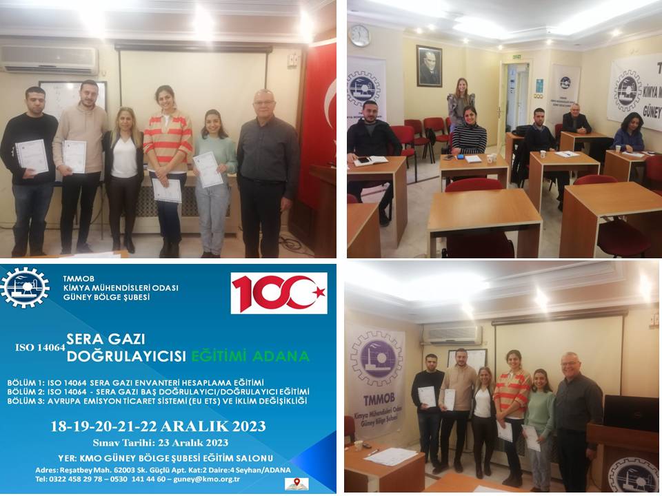 18-22 Aralık 2023 ISO 14064 SERA GAZI DOĞRULAYICISI EĞİTİMİ VE SINAVI Güney Bölge Şubesi Eğitim Salonunda gerçekleştirildi.