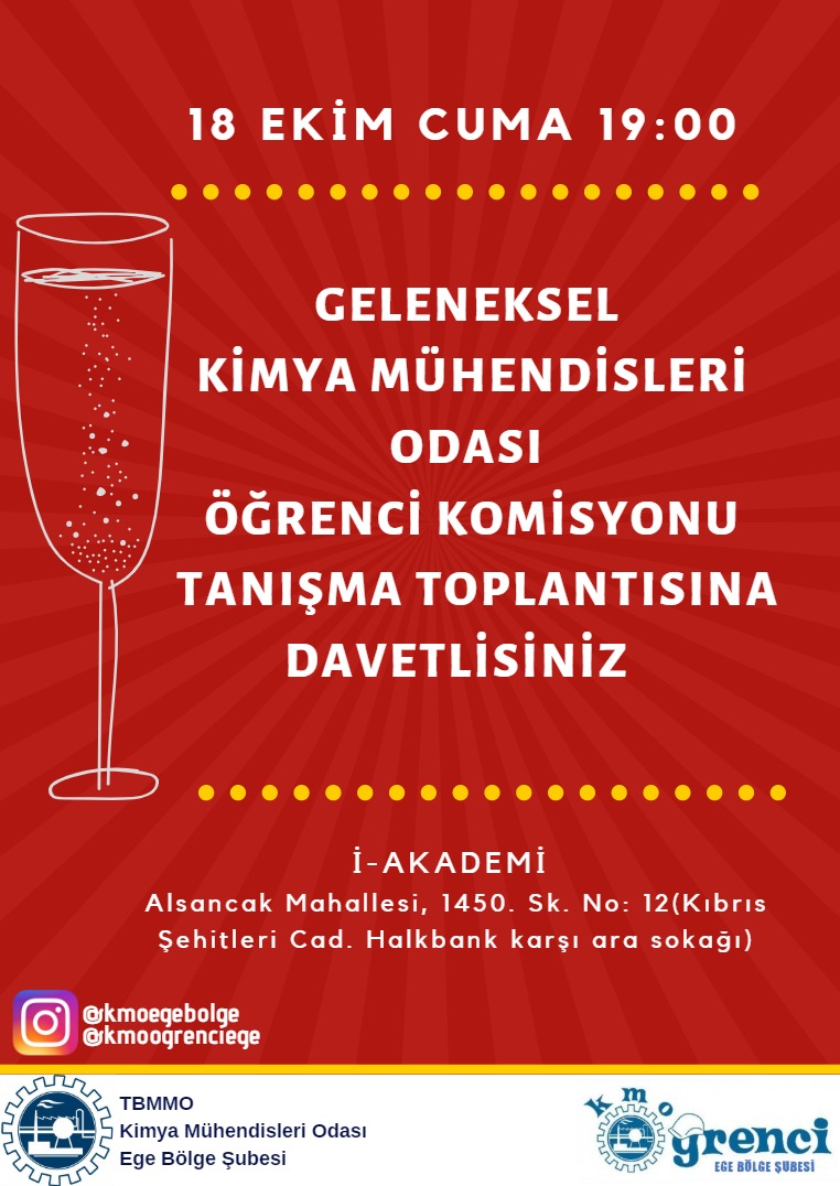 Tanışma Toplantısı`na Ege Üniversitesi, İzmir Yüksek Teknoloji Enstitisü ve Celal Bayar Üniversitelerinde okuyan Kimya Mühendisliği ve Biyomühendislik Bölümünde okuyan 50 ye yakın öğrenci katılmıştır.