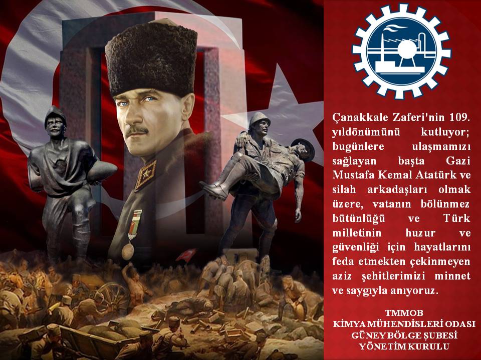 Çanakkale Zaferi‘nin 109. yıldönümünü kutluyor; bugünlere ulaşmamızı sağlayan başta Gazi Mustafa Kemal Atatürk ve silah arkadaşları olmak üzere, vatanın bölünmez bütünlüğü ve Türk milletinin huzur ve güvenliği için hayatlarını feda etmekten çekinmeyen aziz şehitlerimizi minnet ve saygıyla anıyoruz. KMO Güney Bölge Şb. Yön. Kur. A. Başkan Çiğdem EROĞLU
