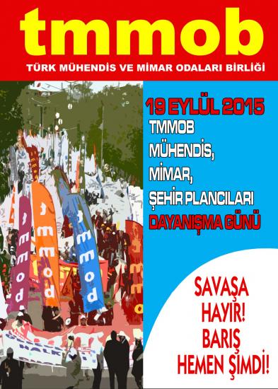 TMMOB tarihinde önemli bir yeri olan 19 Eylül 1979 iş bırakma eyleminin yıldönümünde 2011 yılından bu yana kutlanan `19 Eylül Mühendis, Mimar, Şehir Plancıları Dayanışma Günü`nde bir kez daha alanlara çıkıyoruz. `Savaşa Hayır, Barış Hemen Şimdi` demek için İKK`larımızın örgütlü olduğu kent merkezlerinde kitlesel basın açıklamaları gerçekleştireceğiz.