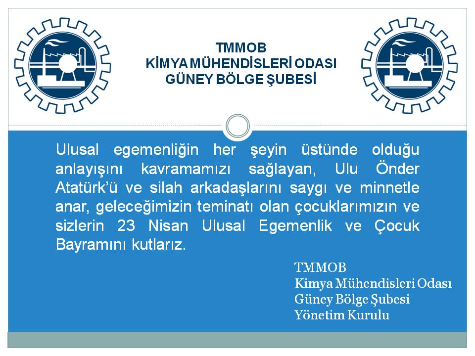 Ulusal egemenliğin her şeyin üstünde olduğu anlayışını kavramamızı sağlayan, Ulu Önder Atatürk`ü ve silah arkadaşlarını saygı ve minnetle anar, geleceğimizin teminatı olan çocuklarımızın ve sizlerin 23 Nisan Ulusal Egemenlik ve Çocuk Bayramını kutlarız.