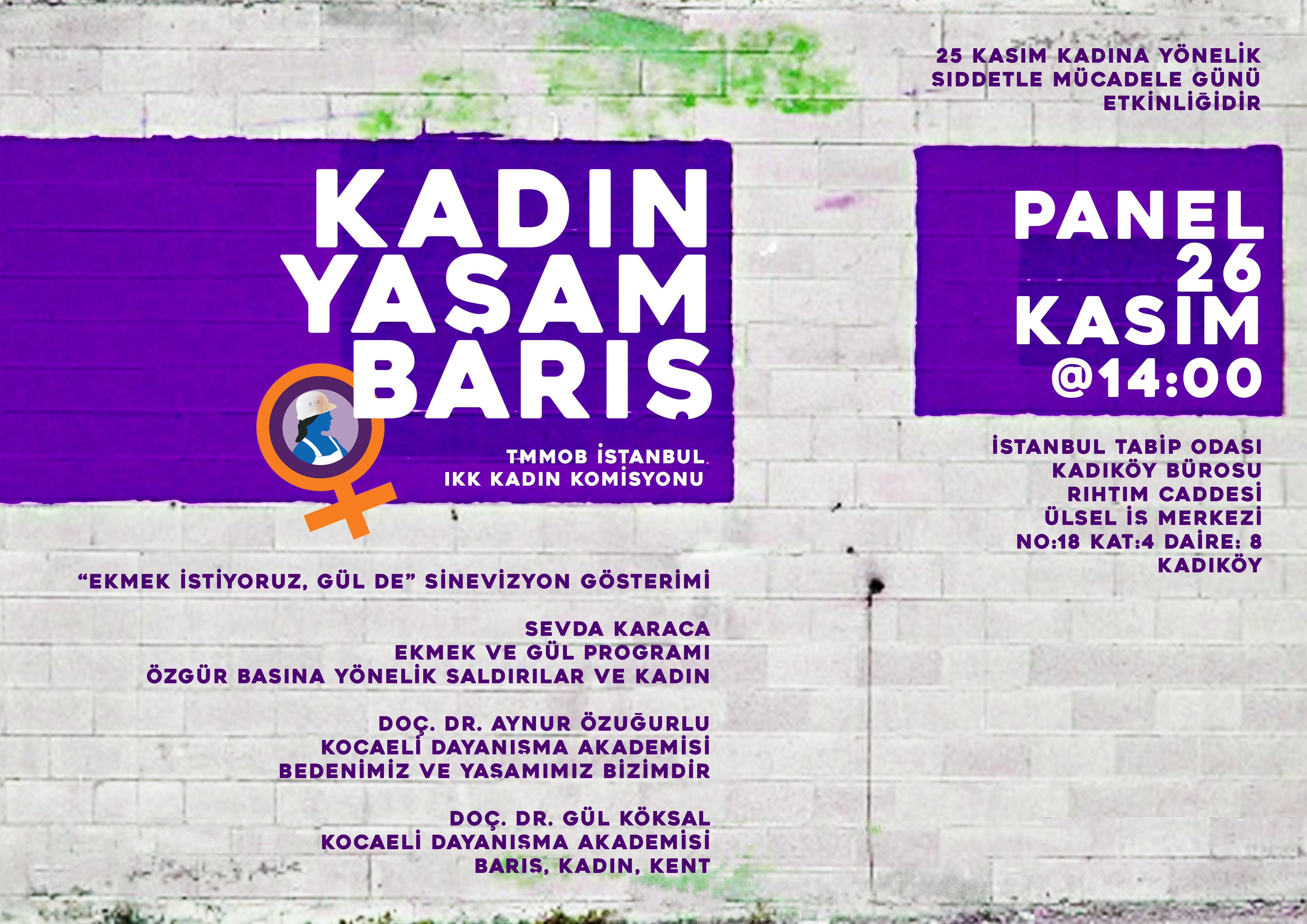 Yaşamı ve Barışı savunan TMMOB İstanbul İKK Kadın Komisyonu olarak tüm kadın meslektaşlarımızı 26 Kasım 2016 tarihinde yapacağımız etkinliğe beraber konuşup paylaşmak için davet ediyoruz.