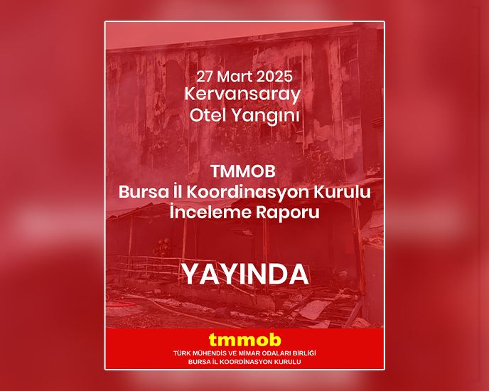 27 Mart 2025 tarihinde, ilimizde yaşanan Uludağ Kervansaray Oteli'nde meydana gelen yangın nedeniyle, TMMOB Bursa İl Koordinasyon Kurulu oluşturduğu uzman heyetinin, yerinde yapılan inceleme sonuçlarını içeren İnceleme Raporu yayınlandı.