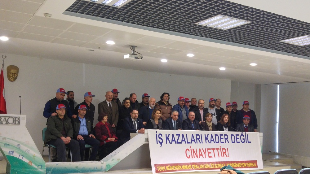 04 Mart 2019 tarihinde, TMMOB Bursa İl Koordinasyon Kurulu tarafından 3 Mart İş Cinayetlerine Karşı Mücadele Günü kapsamında BAOB ortak toplantı salonunda gerçekleştirilen "Güvenli ve Güvenceli Çalışma İçin Sesimizi Yükseltiyoruz!" başlıklı basın açıklamasına katılım sağlanmıştır.