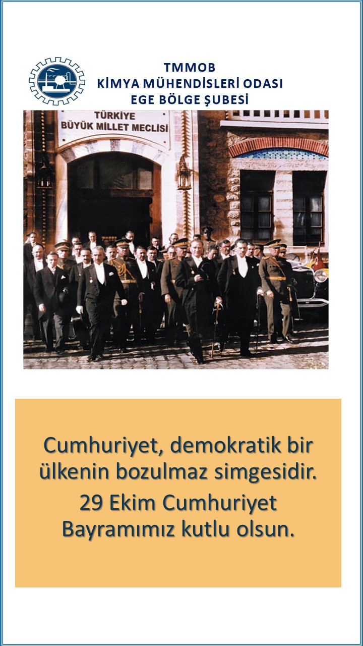 Değerli üyelerimiz; Cumhuriyetimizin 99`uncu yılına ulaşmanın sevinç ve gururunu yaşıyoruz. 19 Mayıs 1919`da Atatürk`ün Samsun`a çıkıp Milli Mücadeleyi başlatmasından ve İstiklal Savaşımızın zaferle sonuçlanmasından sonra, 29 Ekim 1923 tarihinde ilan ettiği Cumhuriyet, Türk Ulusuna bırakılmış en büyük miras ve asla vazgeçilemez bir değerdir.