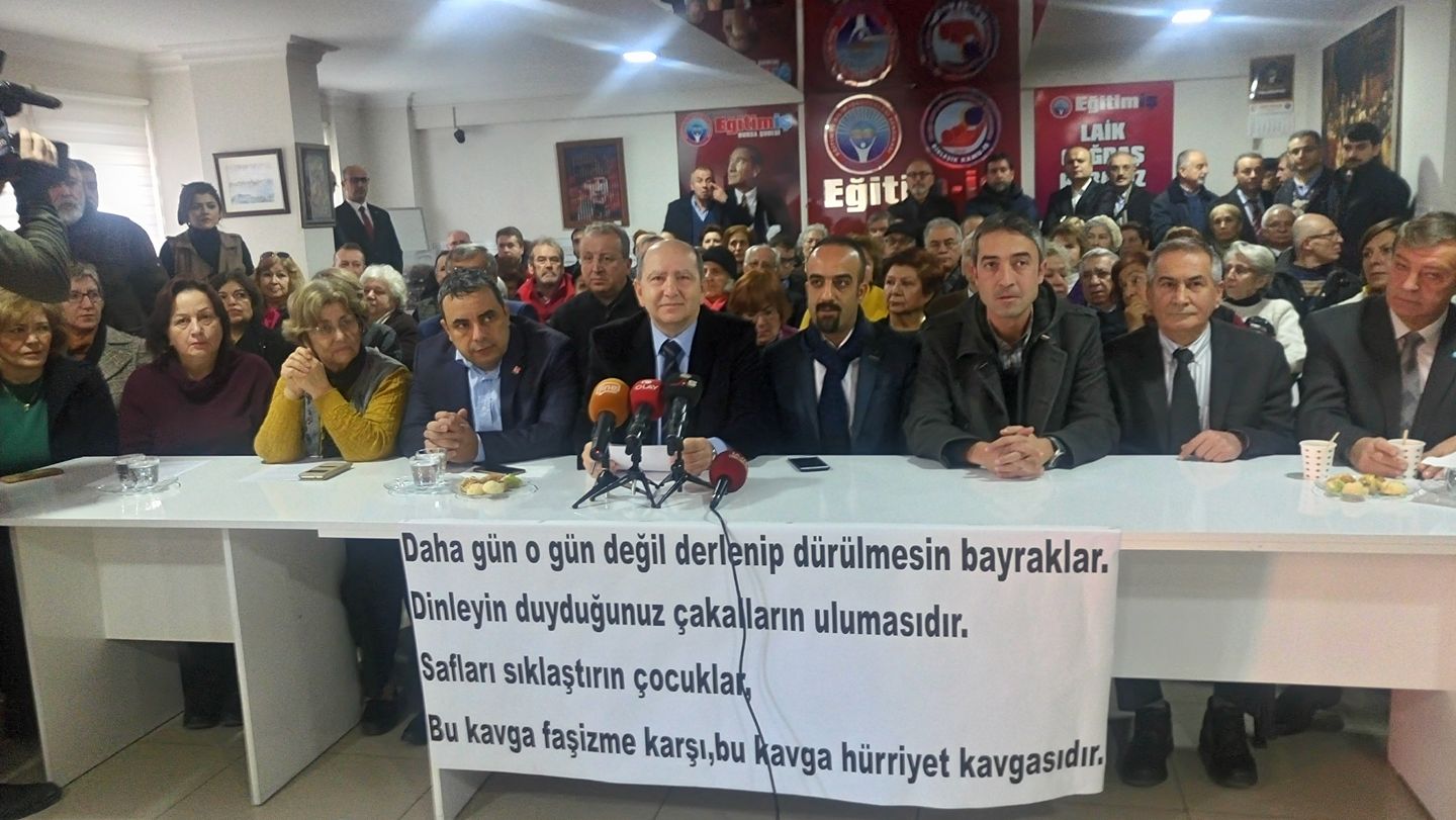13 Ocak 2017 tarihinde, Demokratik Kitle Örgütleri ve Siyasi Partilerin katılımı ile, Eğitim İş Bursa Şubesinde, AKP`nin TBMM`ye getirdiği Anayasa değişikliği paketine ilişkin görüşlerin paylaşıldığı basın açıklamasına katılım sağlanmıştır.