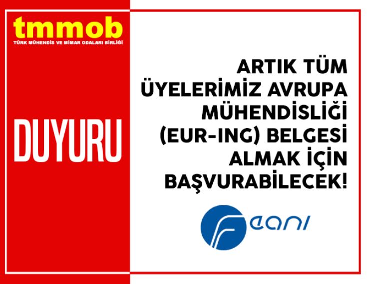 Türk Mühendis ve Mimar Odaları Birliği'nin (TMMOB) üyesi olduğu FEANI (European Federation of National Engineering Associations - Avrupa Ulusal Mühendislik Birlikleri Federasyonu) tarafından verilen Eur-Ing (Avrupa Mühendisliği) Belgesi başvuru kriterlerinde önemli değişikliklere gidildi.