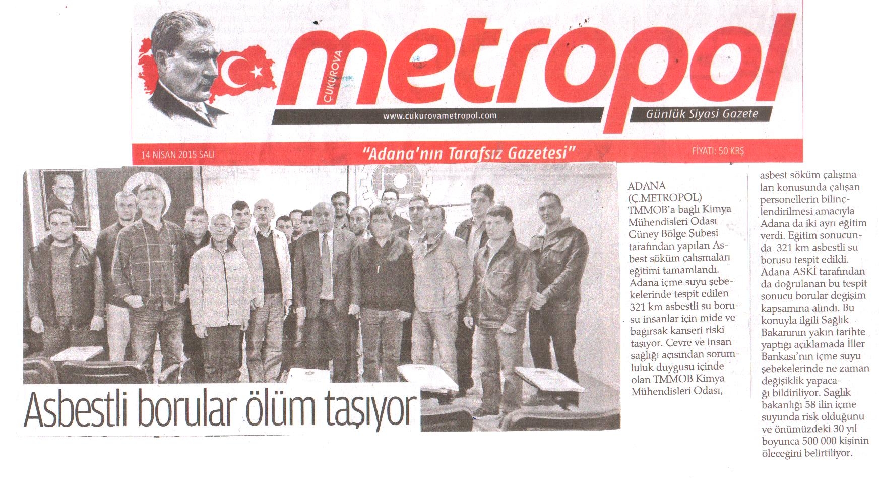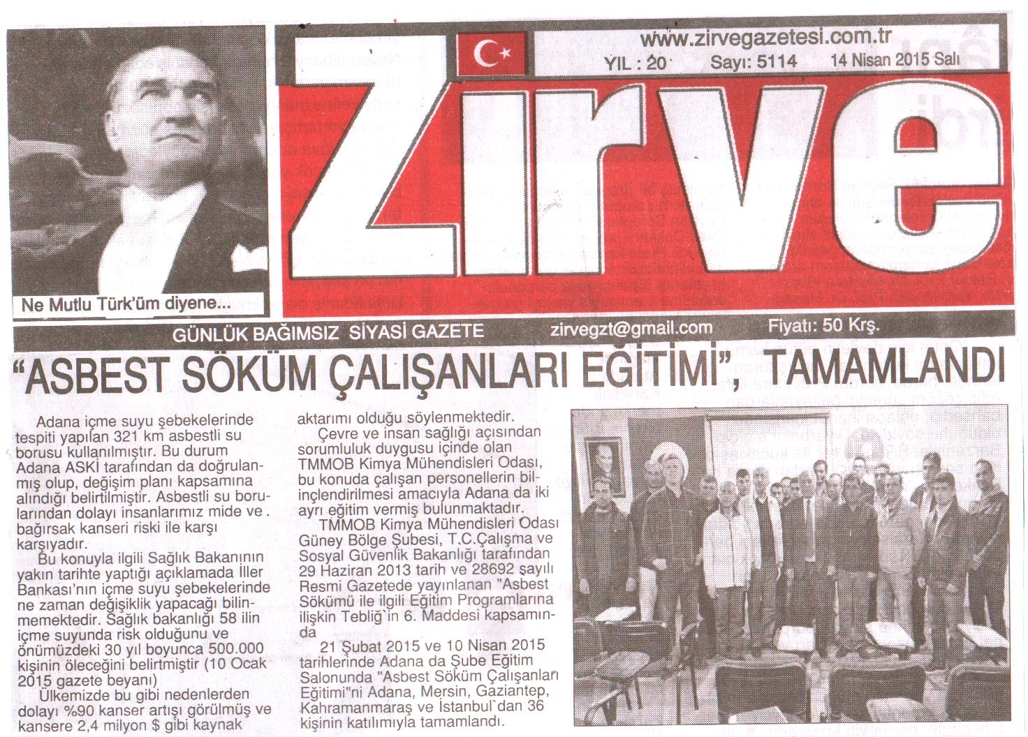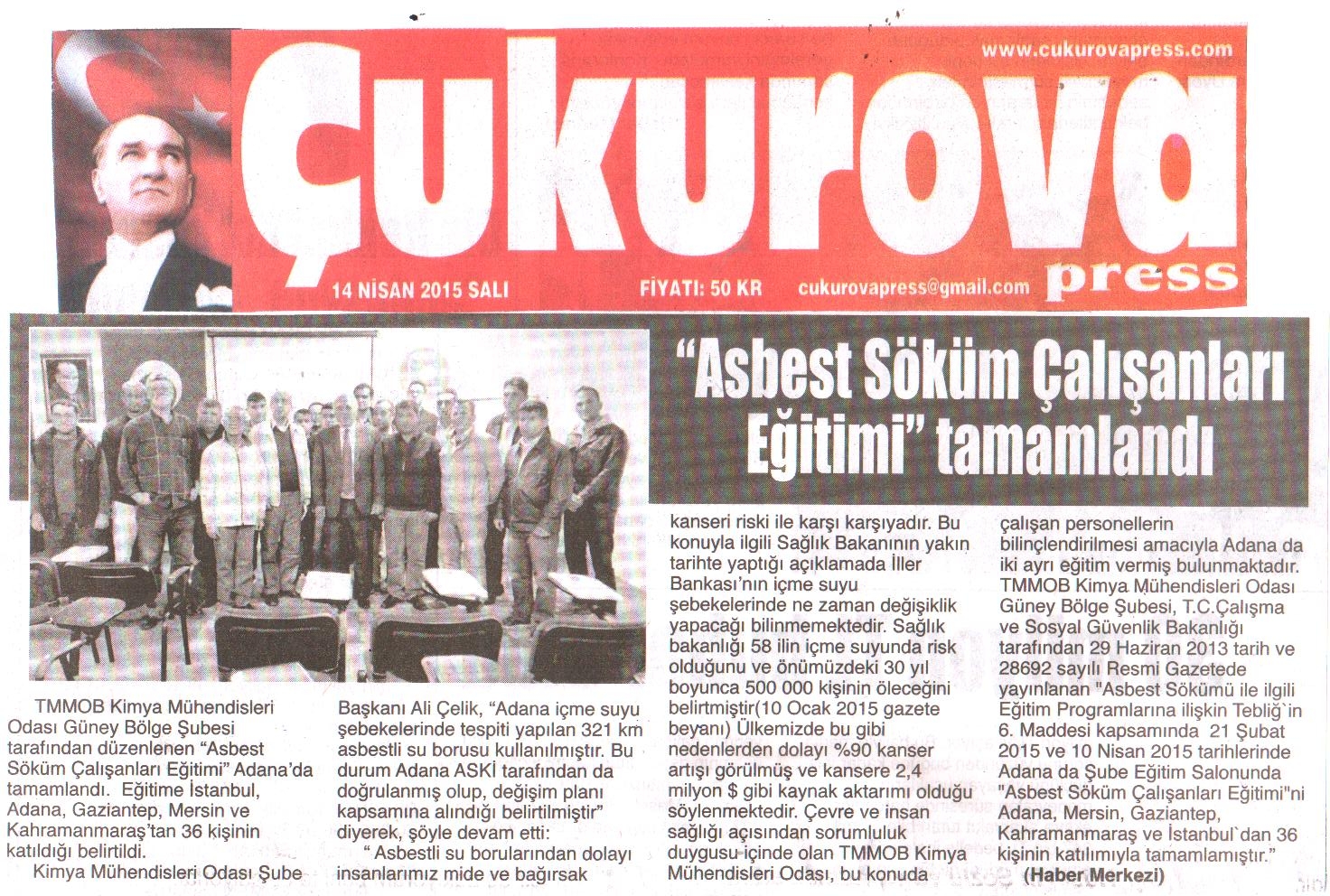 Şube Eğitim Salonunda düzenlediğimiz Asbest Söküm Çalışanı Eğitimi Basın da yer aldı.