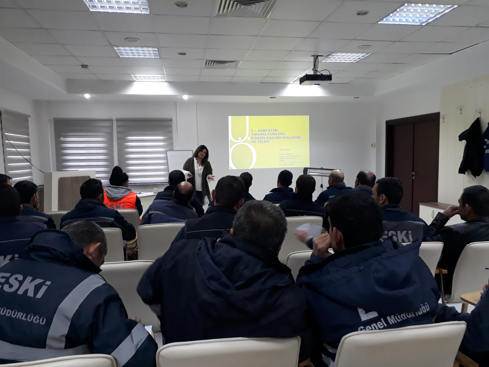 Eskişehir Büyükşehir Belediyesi ESKİ Genel Müdürlüğünde çalışan 75 personel için ;25.01.2013 tarihli 28539 sayılı Resmi Gazetede yayımlanarak yürürlüğe giren Asbestle Çalışmalarda Sağlık ve Güvenlik Önlemleri Hakkında Yönetmeliğin 7. maddesine göre ve 29.06.2013 tarihinde Resmi Gazetede yayımlanan Asbest Söküm ile ilgili Eğitim Programlarına ilişkin Tebliğ kapsamında 3 gün 25er kişilik 3 grup halinde 10-11-12 Mart 2020 tarihleri arasında düzenlediğimiz "ASBEST SÖKÜM ÇALIŞANI EĞİTİMİ" tamamlandı.