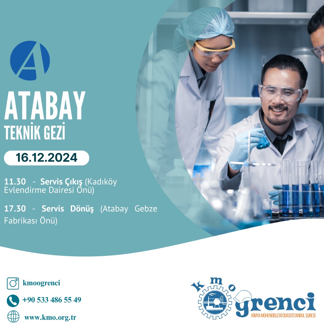 Şubemiz Öğrenci Komisyonu tarafından 16 Aralık Pazartesi günü Atabay İlaç Fabrikasına Teknik Gezi planlanmaktadır.