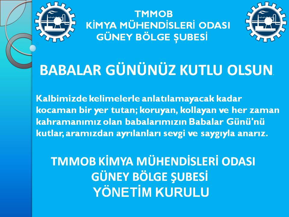 Kalbimizde kelimelerle anlatılamayacak kadar kocaman bir yer tutan, koruyan, kollayan ve her zaman kahramanımız olan babalarımızın Babalar Gününü kutlar, aramızdan ayrılanları sevgi ve saygıyla anarız. KMO Güney Böl. Şb. Y.K.A. Başkan Çiğdem EROĞLU