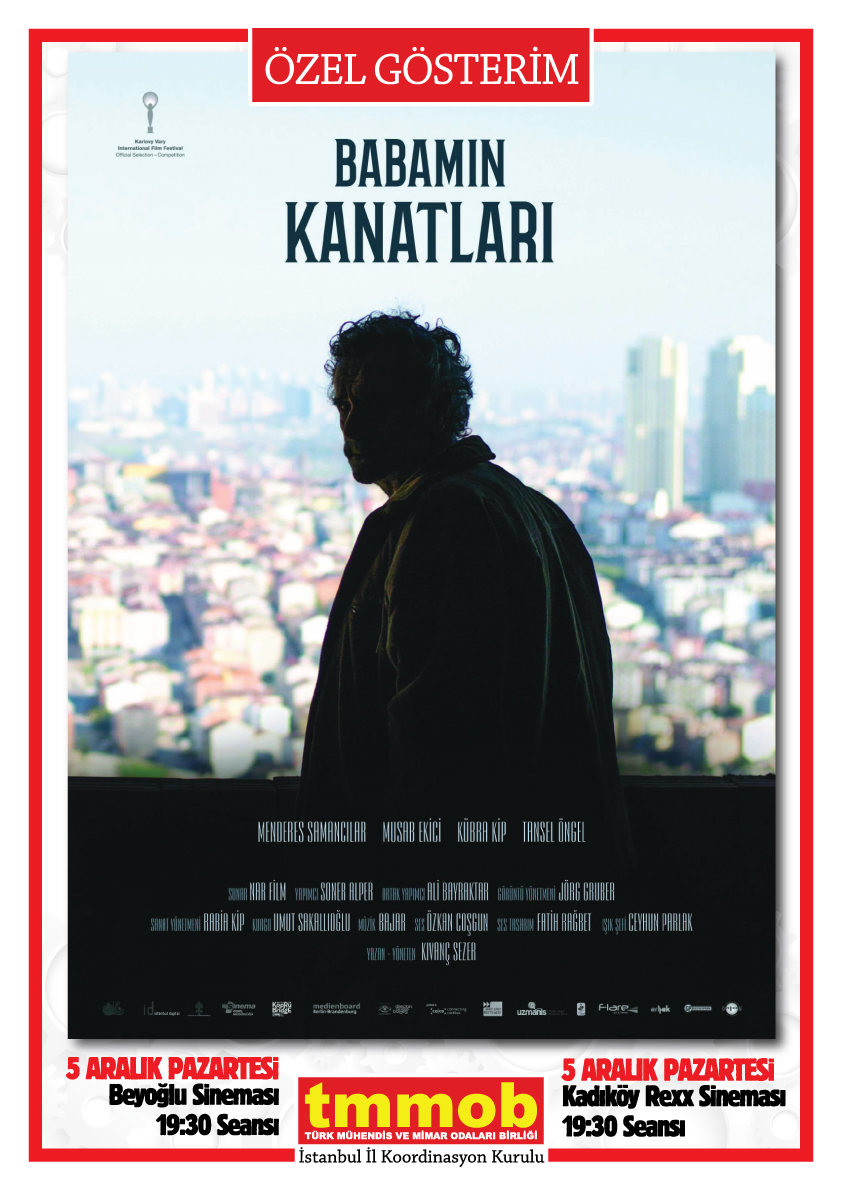 53. Uluslararası Antalya Film Festivalinin 6 ödüllü, 23. Adana Film Festivalinin 7 ödüllü filmi Babamın Kanatları, TMMOB İstanbul İKK özel gösterimi, 5 Aralık 2016 Pazartesi günü eş zamanlı olarak Kadıköy Rexx Sineması ve Beyoğlu Sinemasında gerçekleşecektir.