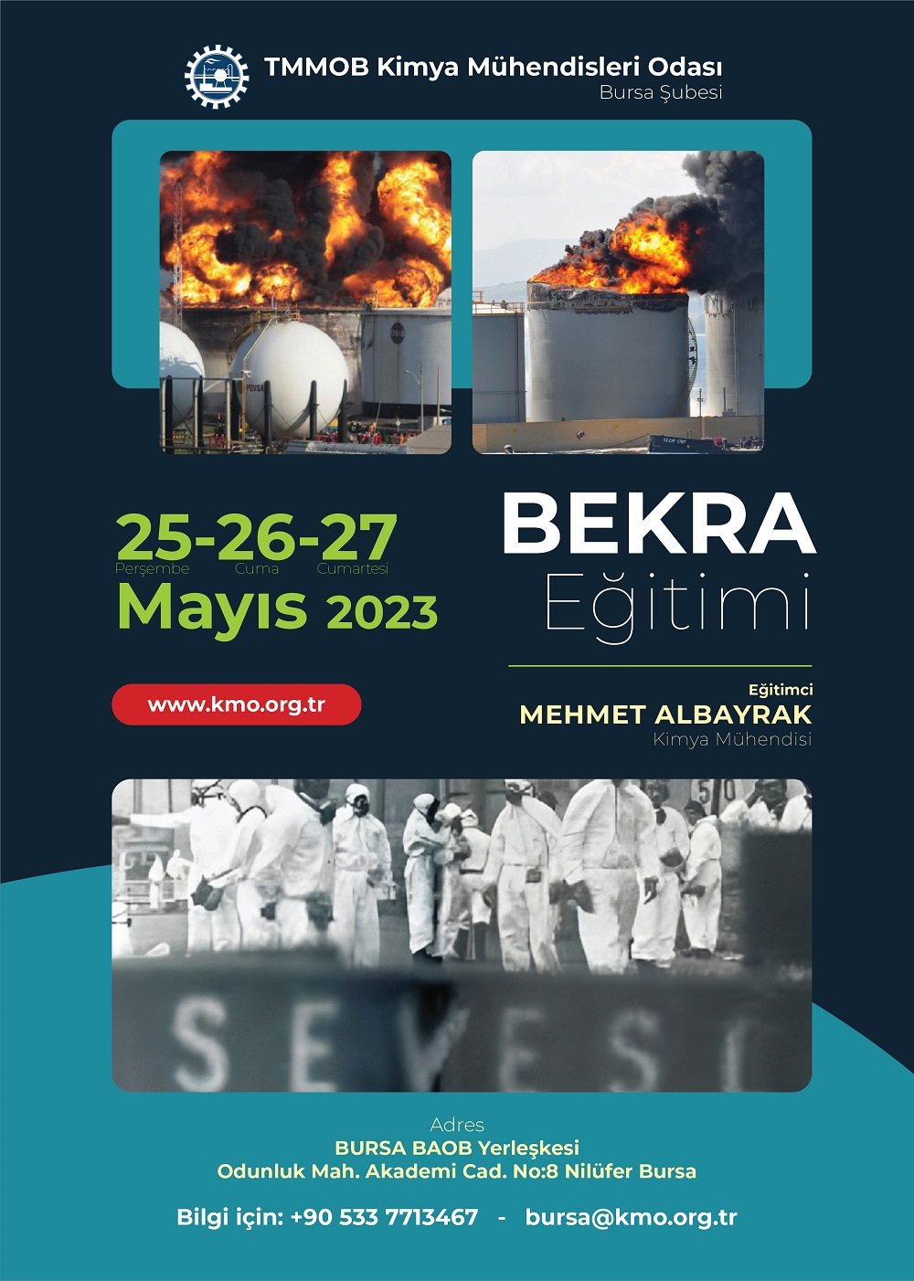 BEKRA Yönetmeliği Avrupa`daki "Seveso Direktifi"nin Türkiye`deki uyumlaştırılmış versiyonudur. 2013 yılında yayımlanan "Büyük Endüstriyel Kazaların Önlenmesi ve Etkilerinin Azaltılması Hakkında Yönetmelik" 2019 yılında 30702 sayılı Resmi Gazete`de yayımlanarak yürürlüğe girmiştir. BEKRA Yönetmeliği, tehlikeli madde bulunduran kuruluşlarda kazaların önlenmesi, olası kazalarda insan sağlığı ve güvenliği ile çevreyi tehdit eden risklerin en aza indirilmesini amaçlamaktadır. Yönetmelik, kazalara karşı alınması gereken önlemleri ve bu süreçte işletmeci firmaların ve ilgili bakanlıkların görev ve sorumluluklarını açıklamaktadır. BEKRA Yönetmeliği ile büyük endüstriyel kazalarla ilgili etkin, kapsamlı ve yüksek seviyeli bir koruma yapılması hedeflenmektedir. Yönetmeliğe göre alt seviyeli ve üst seviyeli kuruluşların BEKRA bildirimi yapması gerekmektedir. Bunun yanı sıra alt seviyeli kuruluşların büyük kaza önleme politikası belgesi, üst seviyeli kuruluşların da güvenlik raporu hazırlamaları gerekmektedir. TMMOB Kimya Mühendisleri Odası olarak "BEKRA Yönetmeliği" kapsamında 25-26-27 Mayıs 2023 tarihleri arasında TMMOB Kimya Mühendisleri Odası Bursa Şubemizde yüzyüze sanayi işletmelerine yönelik bir eğitim düzenlenecektir. İşletmenizden konu ile ilgili personelin katılımını rica eder, çalışmalarınızda başarılar dileriz. Saygılarımızla,