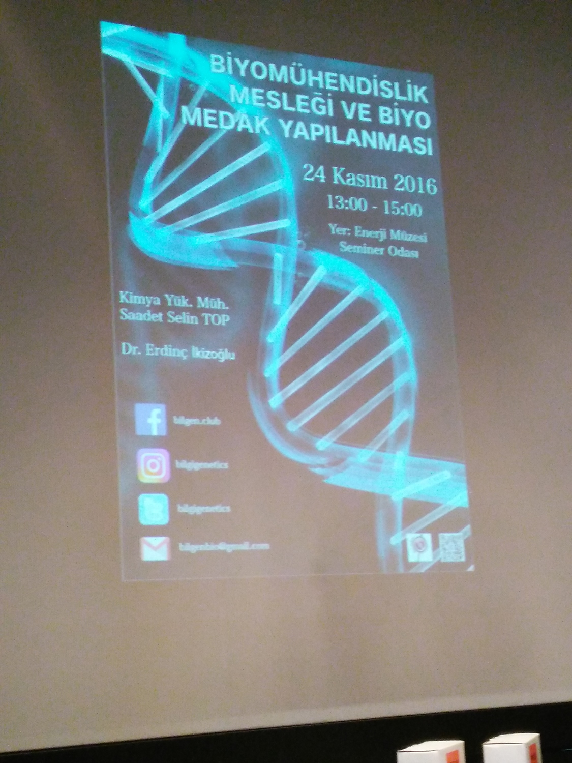 24 Kasım 2016 tarihinde Bilgi Üniversitesi Genetik ve Biyomühendislik bölümünde meslek ve oda tanıtımı gerçekleştirildi.