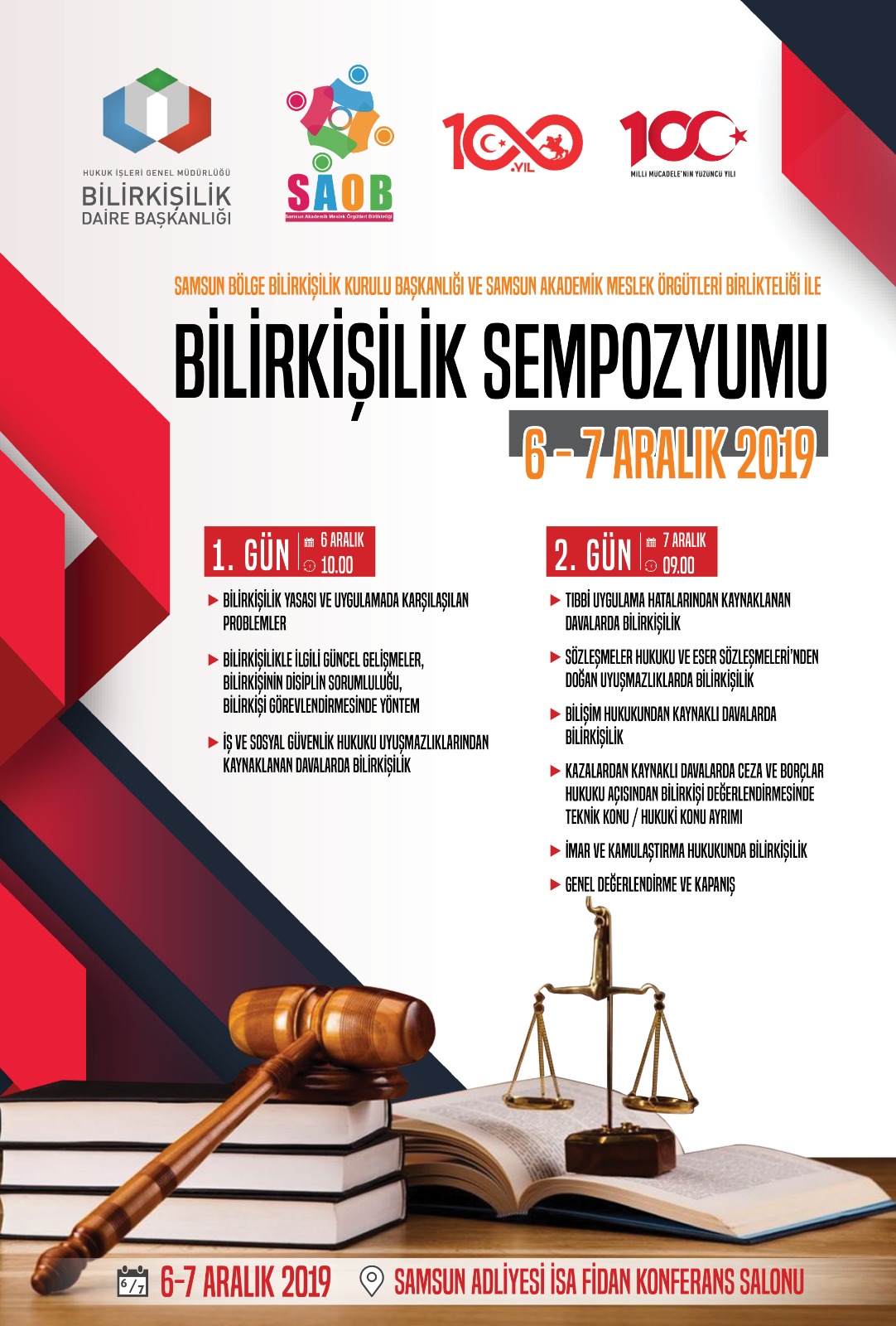 Samsun Bilirkişi Bölge Başkanlığı ve Samsun Akademik Odalar Birlikteliğinin ortak çalışması olan BİLİRKİŞİ SEMPOZYUMU,6-7 Aralık 2019 tarihlerinde Samsun Adliyesi İsa Fidan Konferans Salonunda gerçekleştirilecektir.
