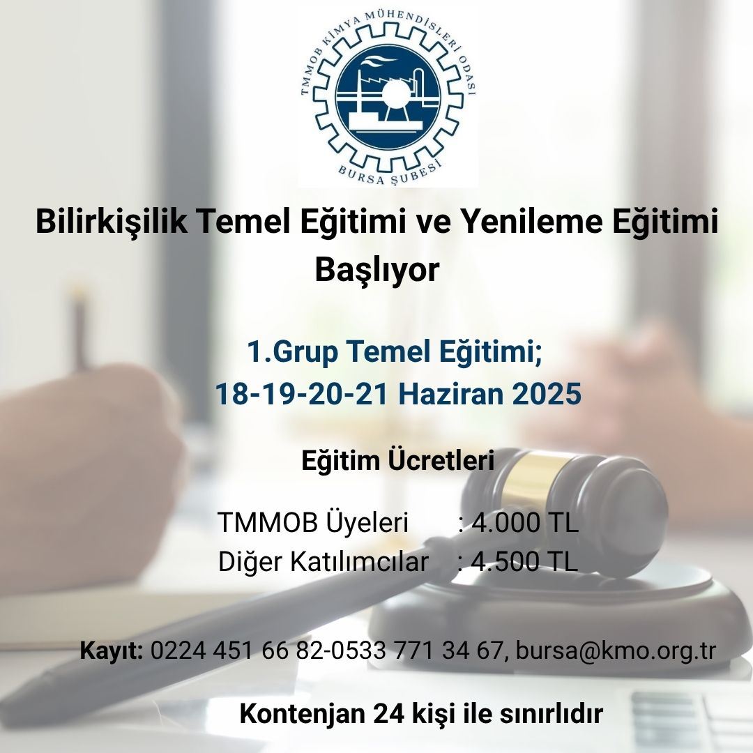 Bu bağlamda 1. Grup Temel Eğitimi 18-19-20-21 Haziran 2025 tarihlerinde yapılmak üzere planlanmıştır. Eğitime katılmak isteyenlerin ekteki formu doldurarak bursa@kmo.org.tr adresine göndermeleri gerekmektedir.