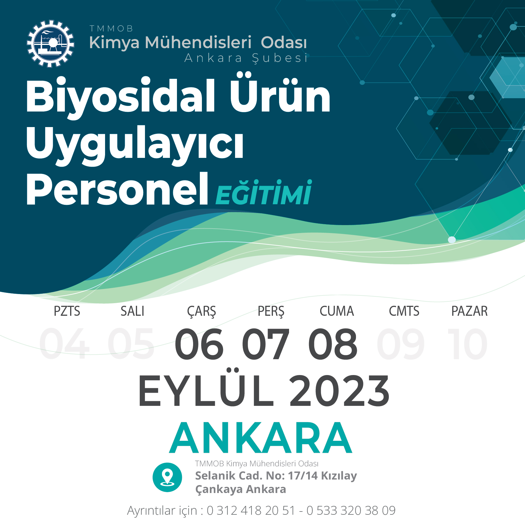 06-07-08 Eylül 2023 tarihlerinde Ankara`da yüz yüze düzenlenecek `BİYOSİDAL ÜRÜN UYGULAYICI PERSONEL EĞİTİMİ`ne kayıt için gerekli evraklarla ankara@kmo.org.tr adresine e-posta atmanız veya şubemize uğramanız gerekmektedir.