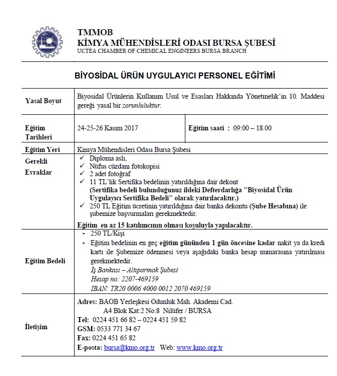 BİYOSİDAL ÜRÜN UYGULAYICI PERSONEL EĞİTİMİ /24-25-26 KASIM 2017