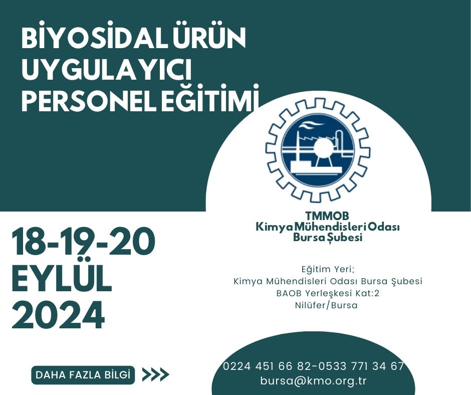 BİYOSİDAL ÜRÜN UYGULAYICI PERSONEL EĞİTİMİ TELEFON : 0224 451 66 82 - 0533 771 34 67 | |