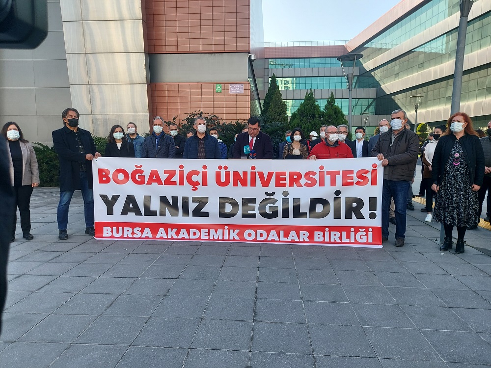 Bursa Akademik Meslek Odaları olarak, Boğaziçi Üniversitesi ile ilgili yaşananlara ilişkin 05 Şubat 2021 tarihinde Bursa Akademik Odalar Birliği (BAOB) Özgürlük ve Demokrasi Meydanı`nda‘Boğaziçi Üniversitesi Yalnız Değildir` basın açıklaması düzenlenmiştir
