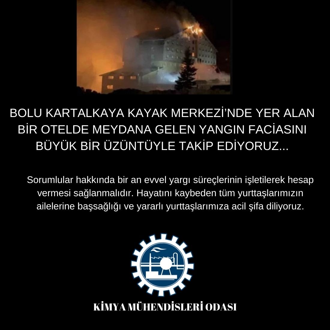 BOLU KARTALKAYA KAYAK MERKEZİ'NDE YER ALAN BİR OTELDE MEYDANA GELEN YANGIN FACİASINI BÜYÜK BİR ÜZÜNTÜYLE TAKİP EDİYORUZ