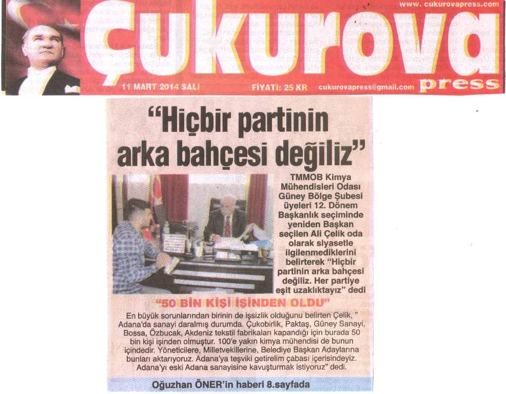 Şube Başkanımız Ali Çelik, Çukurovapress Gazetesine demeç verdi.