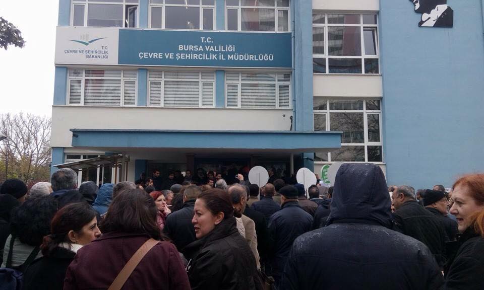 Şubemizin de bileşeni olduğu DOSAB TERMİK SANTRALİNE HAYIR platformu 10 Nisan 2015 de Çevre Şehircilik İl Müdürlüğünün önündeydi.Bursa‘nın ortasına kurulacak Kömürlü Termik Santralin yapımına niahi ÇED ile onay veren çevre bakanlığına basın açıklamasından sonra binlerce itiraz dilekçesini topluca verildi..