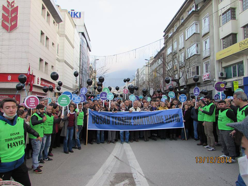 Bileşeni olduğumuz "DOSAB Kömürlü Termik Santraline Hayır Platformu" tarafından, kentin merkezinde yapılmak istenen kömür yakıtlı termik santralinin çevre ve sağlık tehditlerine karşı 13 Aralık 2014 tarihinde Setbaşı/Mahvel önünden başlayan kent yürüşümüz ve basın açıklamamız yapılmıştır.