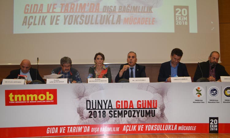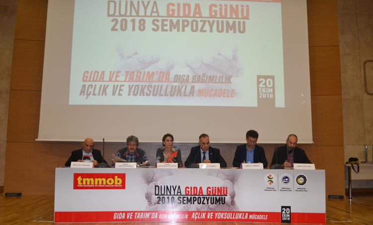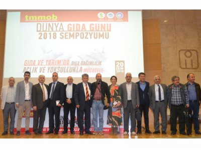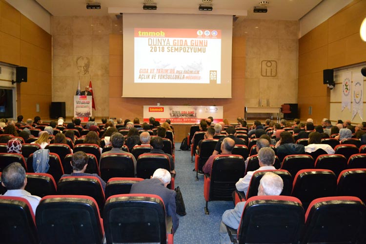 Dünya Gıda Günü 2018 Sempozyumu, TMMOB çatısı altında; ODA'mız, Gıda Mühendisleri Odası ve Ziraat Mühendisleri Odası'nın ortak çalışması ile 20 Ekim 2018 Cumartesi günü, İMO Teoman Öztürk Konferans Salonu'nda yoğun bir katılım ile gerçekleştirildi.