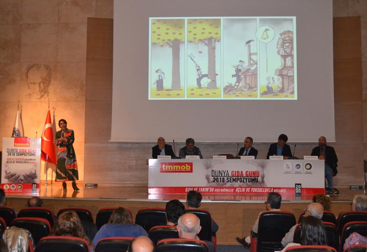 Açılış konuşmalarının ardından; Prof.Dr. Onur HAMZAOĞLU (Doktor, Halk Sağlığı Uzmanı): "Herkes İçin Gıda", Keigo OBARA (FAO Gıda Güvenliği Uzmanı): "SOFI 2018 Dünya`da Gıda Güvencesi ve Beslenme Durumu Raporu", Erhan ÜNAL (Araştırmacı-Yazar): "Küresel Planlar ve Tarımda Tekelleşme", Doç.Dr. Gökhan GÜNAYDIN (Önceki dönemler ODA Başkanımız):"Gıda, Tarım ve Türkiye Ekonomisi" konu başlıklarında değerlendirmelerde bulundu.