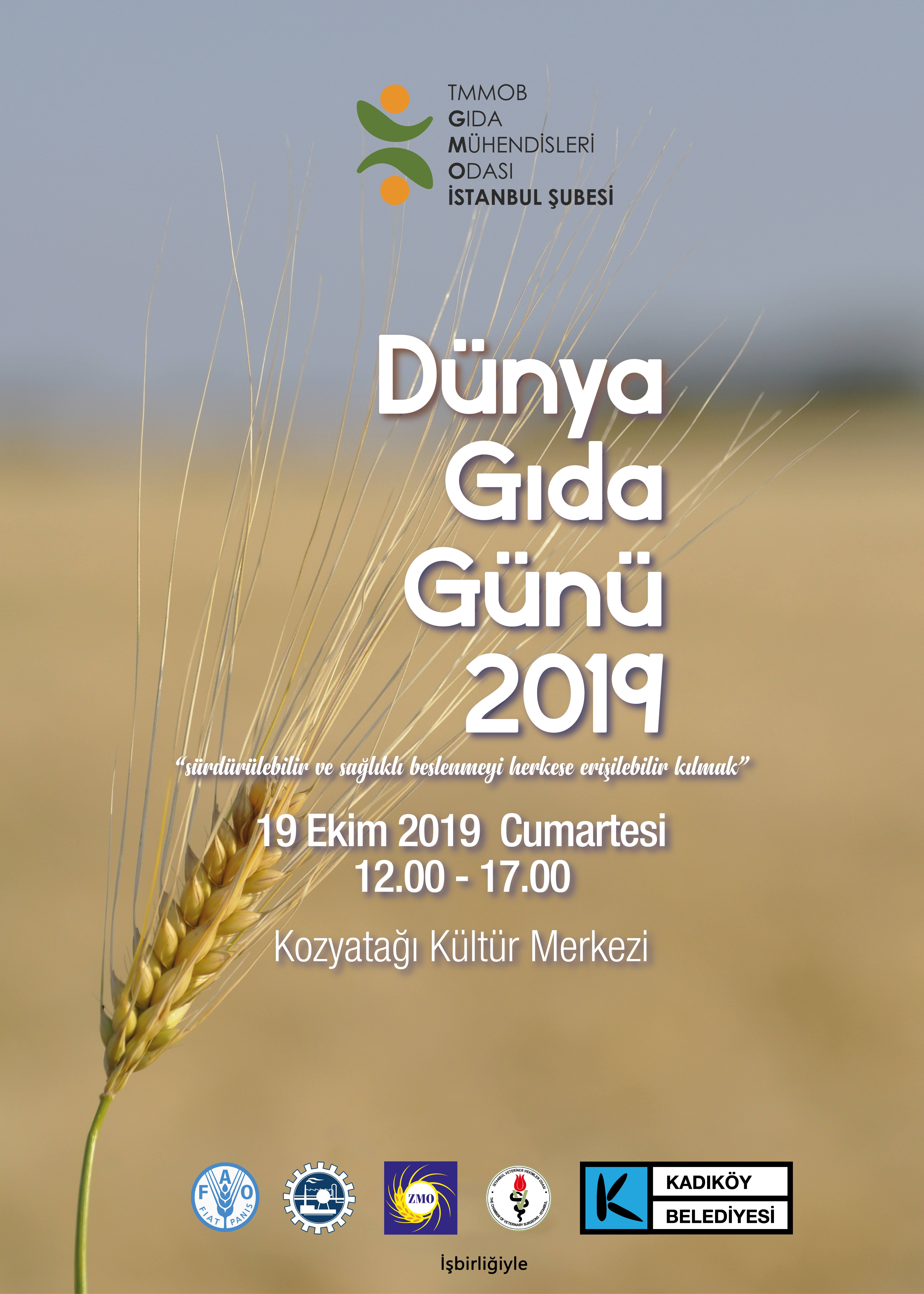 TMMOB Kimya, Gıda ve Ziraat Mühendisleri Odası İstanbul Şubeleri olarak, Dünya Gıda Günü etkinlikleri kapsamında 19 Ekim 2019 Cumartesi günü Kozyatağı Kültür Merkezinde düzenleyeceğimiz etkinlikle ilgili detaylar aşağıda ekler kısmında yer almaktadır. Etkinlikte ayrıca "Gıdamızın Bozulan Kimyası" konulu karikatür yarışmamızın ödül töreni ve sergisi olacaktır.